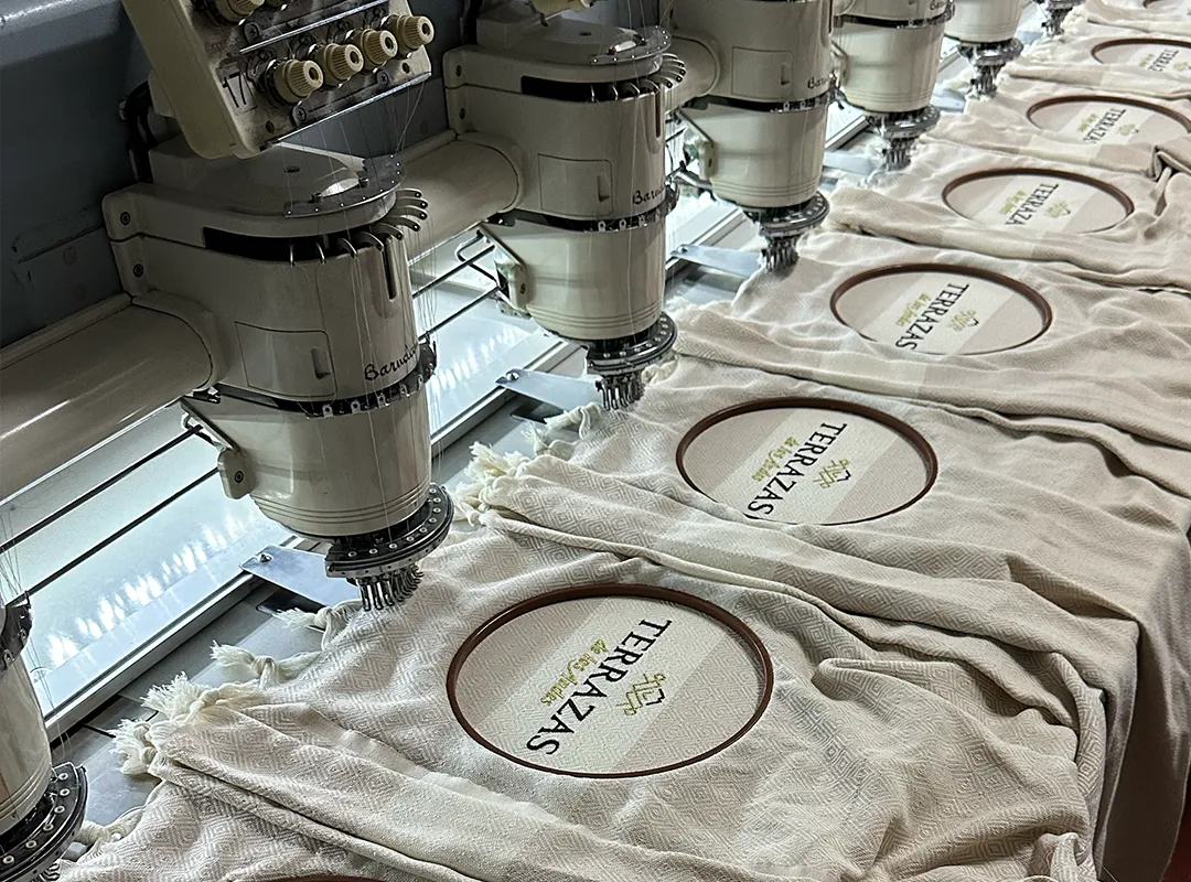Denizli Buldan'da üretilen peştemallerimiz, yüksek kaliteli pamuk ipliği kullanılarak dokunmuştur. Müşterilerimizin özel talepleri doğrultusunda, peştemallerin üzerine firma logoları ve özel tasarımlar titizlikle işlenmiştir. Bu özel nakışlar, peştemallerimize benzersiz bir görünüm kazandırırken, müşterilerimizin marka kimliğini de ön plana çıkarmaktadır. Peştemallerimiz, hafif, çabuk kuruyan ve kolay taşınabilir özellikleri sayesinde plajlarda, havuzlarda, saunalarda ve günlük kullanımda ideal bir seçenektir. Ürünlerimizin kalitesi, dayanıklılığı ve estetik görünümü, müşterilerimizden tam not almaktadır. Rumina Tekstil olarak, her zaman en iyi malzemeleri kullanarak, en yüksek standartlarda üretim yapmaya özen gösteriyoruz. Müşterilerimize sunduğumuz ürünlerin kalitesi, markamızın en önemli değerlerinden biridir ve bu değeri korumak için sürekli olarak çalışıyoruz.